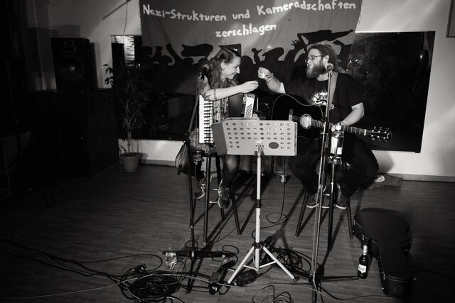 Get into gear! It's high time to take action against the existing right-wing structures and to maintain and expand anti-fascist structures! This requires attitude, stamina and money! For a €5 entry fee, you and many others will run a spectacular lap around the festival site and take on hedonistic challenges. 100% of all proceeds will be donated to local anti-right-wing initiatives. You are also welcome to find sponsors who will double or triple your contribution. Start numbers (buttons) are available at the cinema and at the Mokkabrigade.